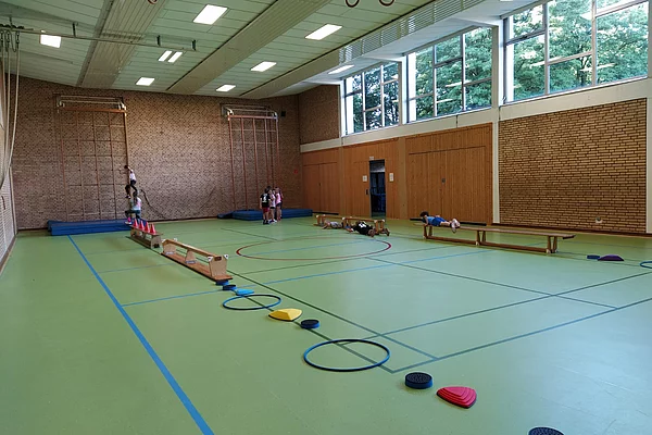 Entdecken Sie die verschiedenen Räume und Bereiche unserer Schule – von Klassenzimmern über Fachräume bis zur Sporthalle. Klicken Sie auf die einzelnen Bereiche, um mehr über Ausstattung und Nutzung zu erfahren und erhalten Sie über die Bilder einen direkten Eindruck unserer Schule.
